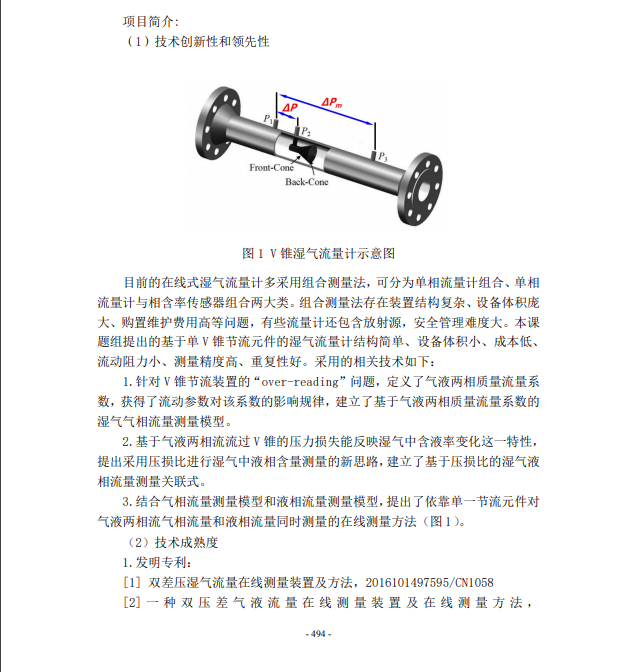 基于单 V 锥节流元件的湿气气液流量双参数测量