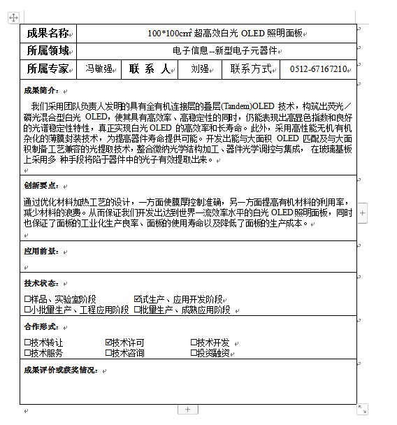 100*100cm2超高效白光OLED照明面板