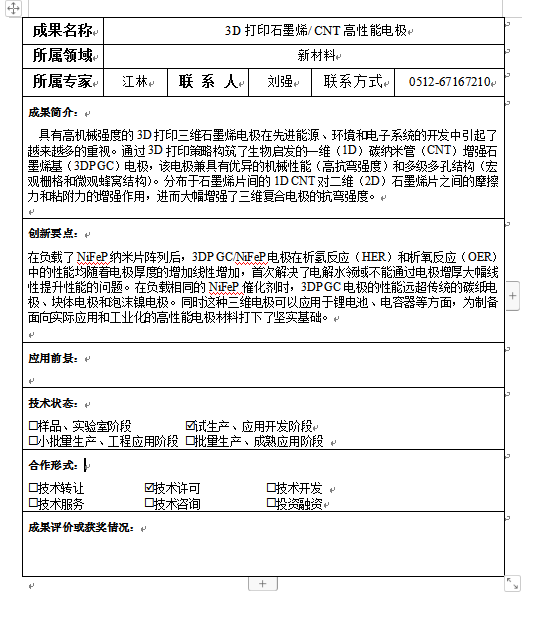 3D打印石墨烯/ CNT高性能电极