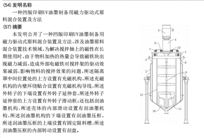凹版印刷UV油墨制备用磁力驱动式原料混合装置及方法