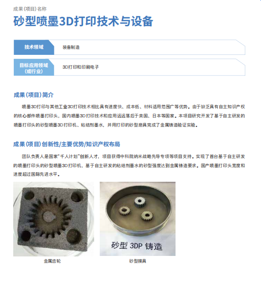 砂型喷墨3D打印技术与设备