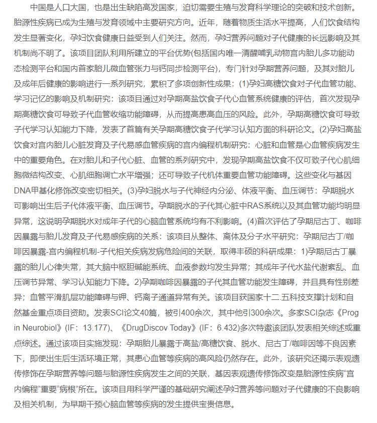 孕妇营养与胎源性疾病发生及其早期编程机制