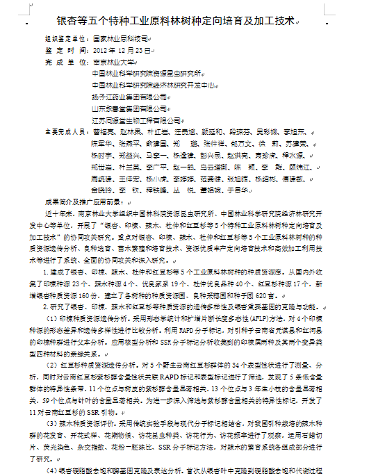 银杏等五个特种工业原料林树种定向培育及加工技术