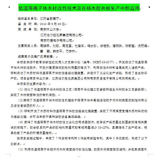 低温等离子体木材改性技术及在杨木胶合板生产中的应用