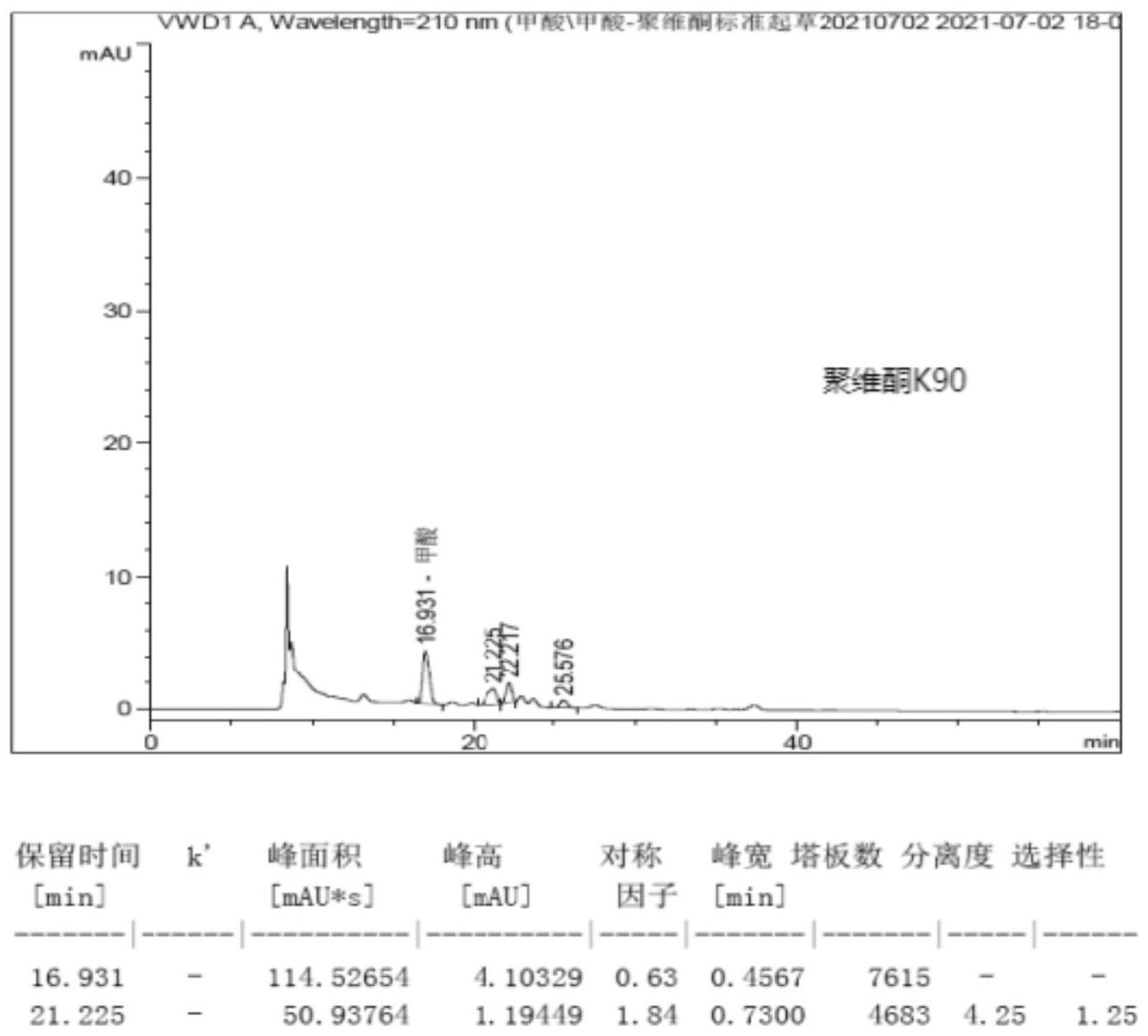 一种聚维酮K90中甲酸检测方法