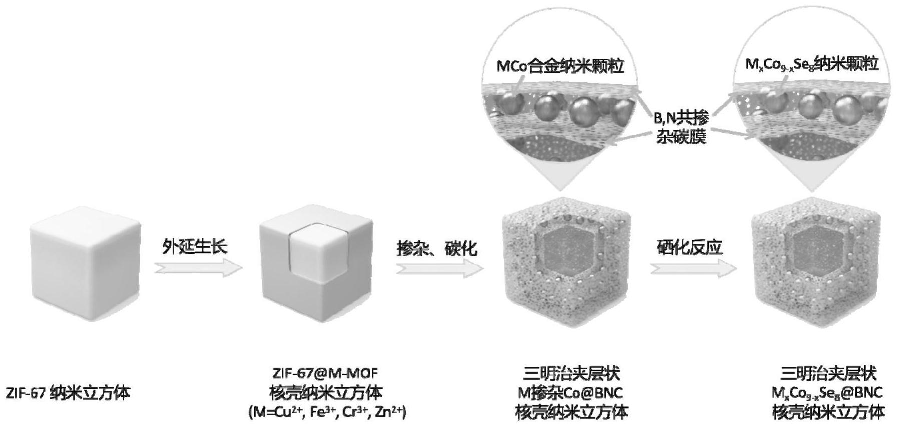一种三明治状MxCo9-xSe8@NC核壳纳米立方盒电催化剂及其制备与应用
