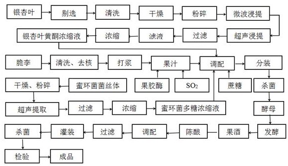 一种具有银杏叶、蜜环菌活性成分的脆李果酒的制备方法