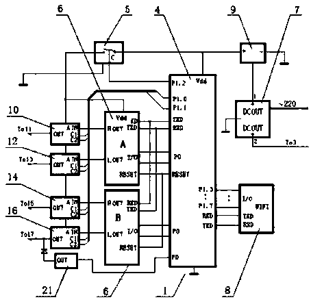 安装在室内LED照明灯内的多路音频调试红外输出装置