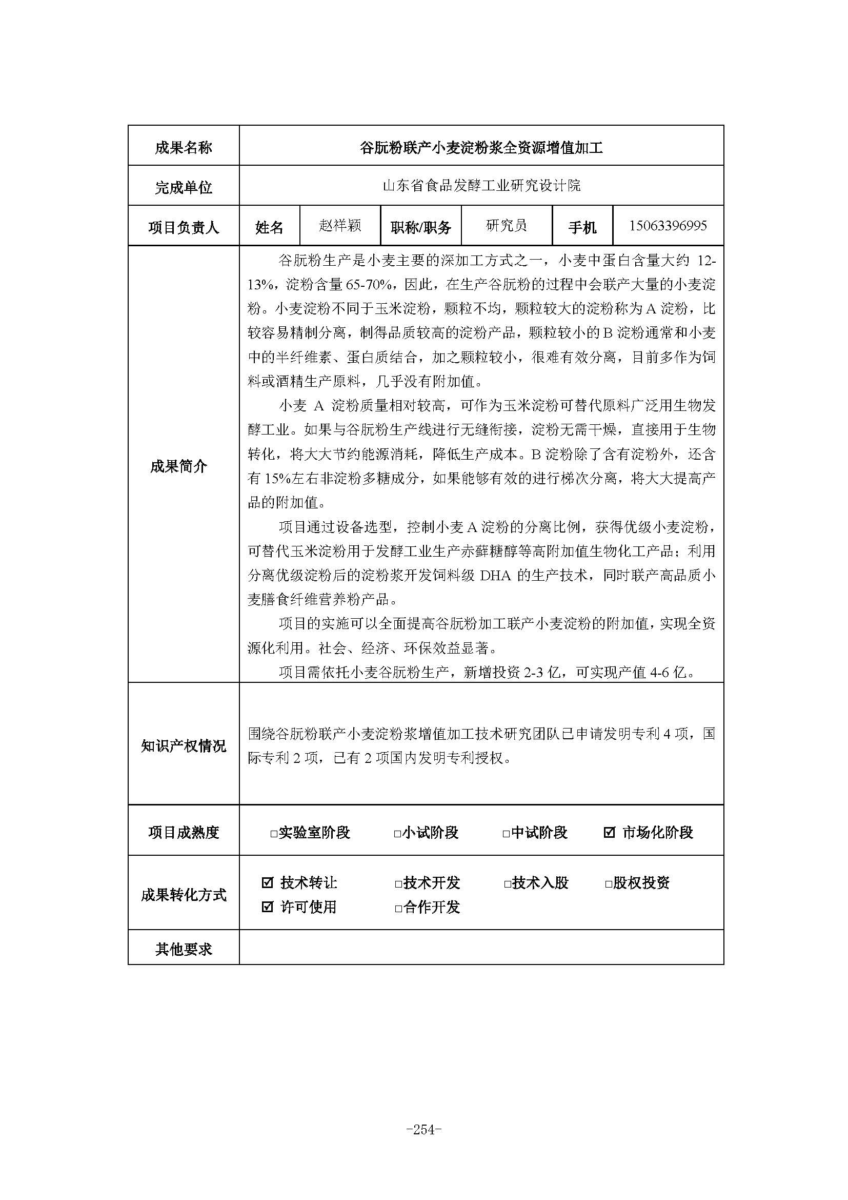 谷朊粉联产小麦淀粉浆全资源增值加工