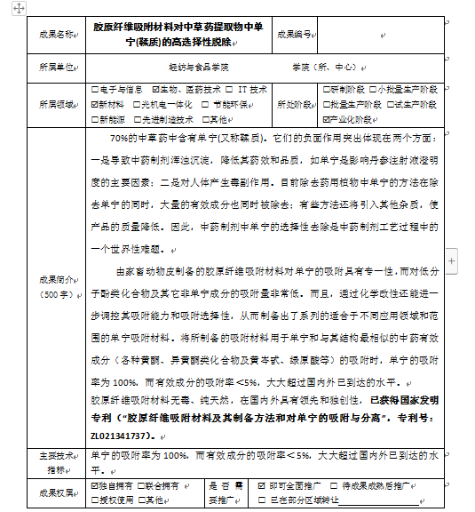 胶原纤维吸附材料对中草药提取物中单宁(鞣质)的高选择性脱除
