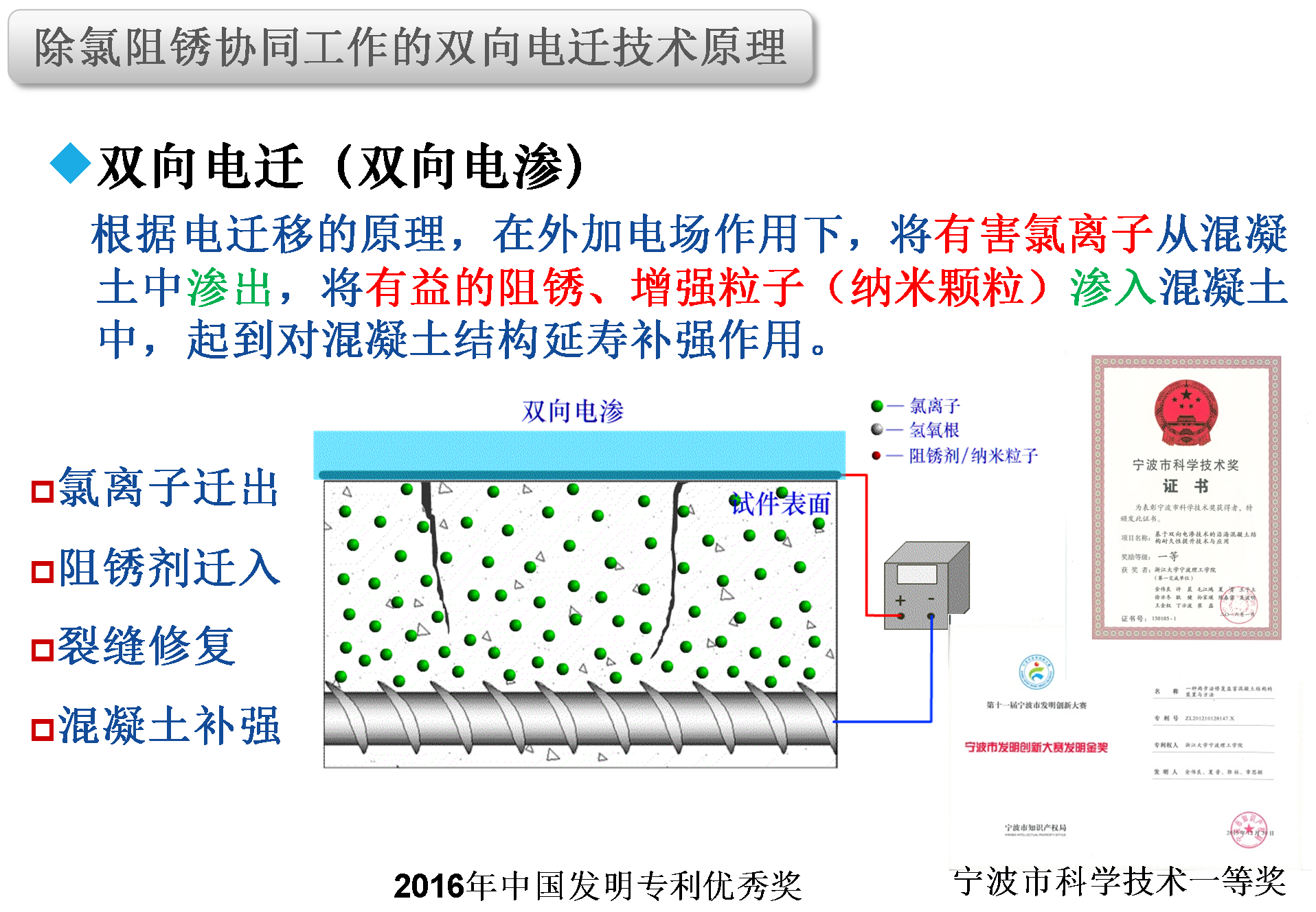基于双向电迁的混凝土结构耐久性寿命提升技术