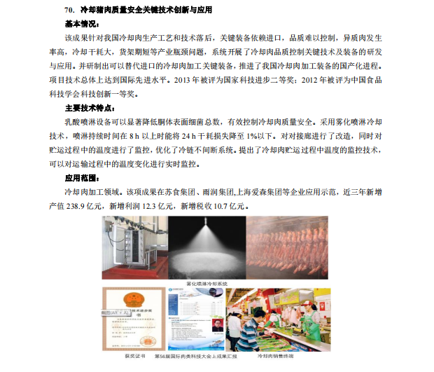 冷却猪肉质量安全关键技术创新与应用