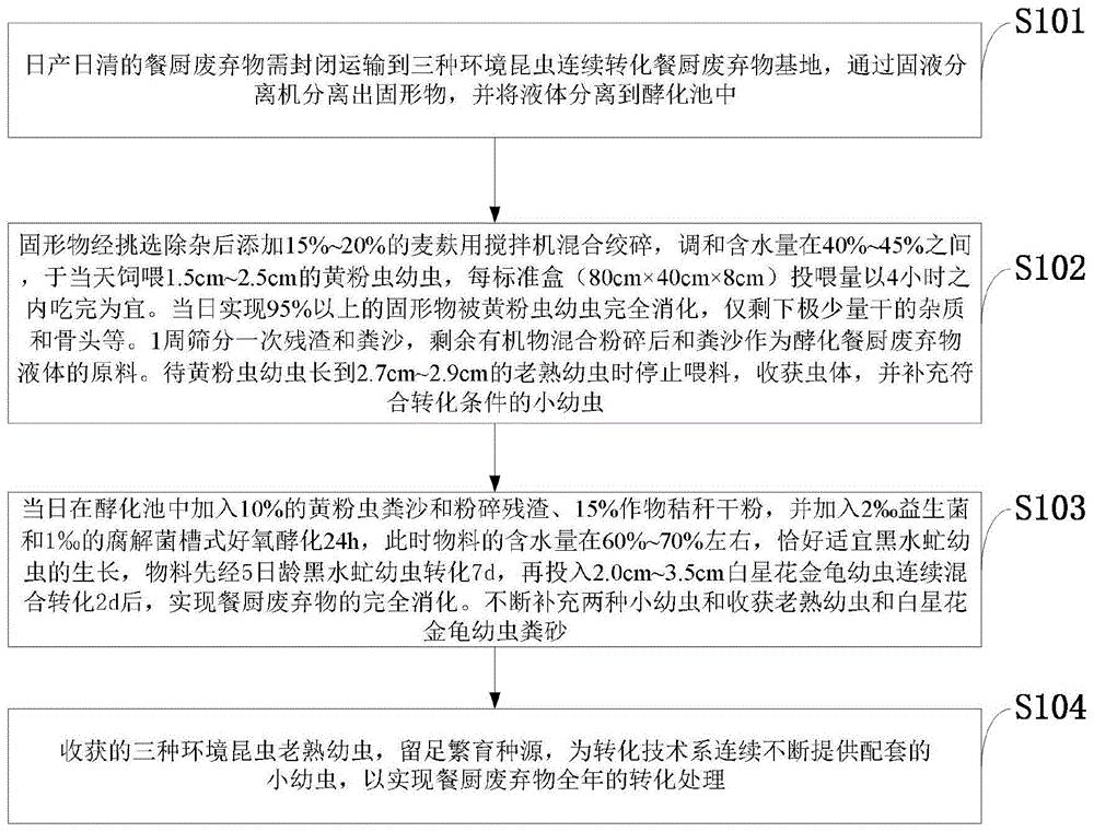 一种利用三种环境昆虫连续转化餐厨废弃物的方法