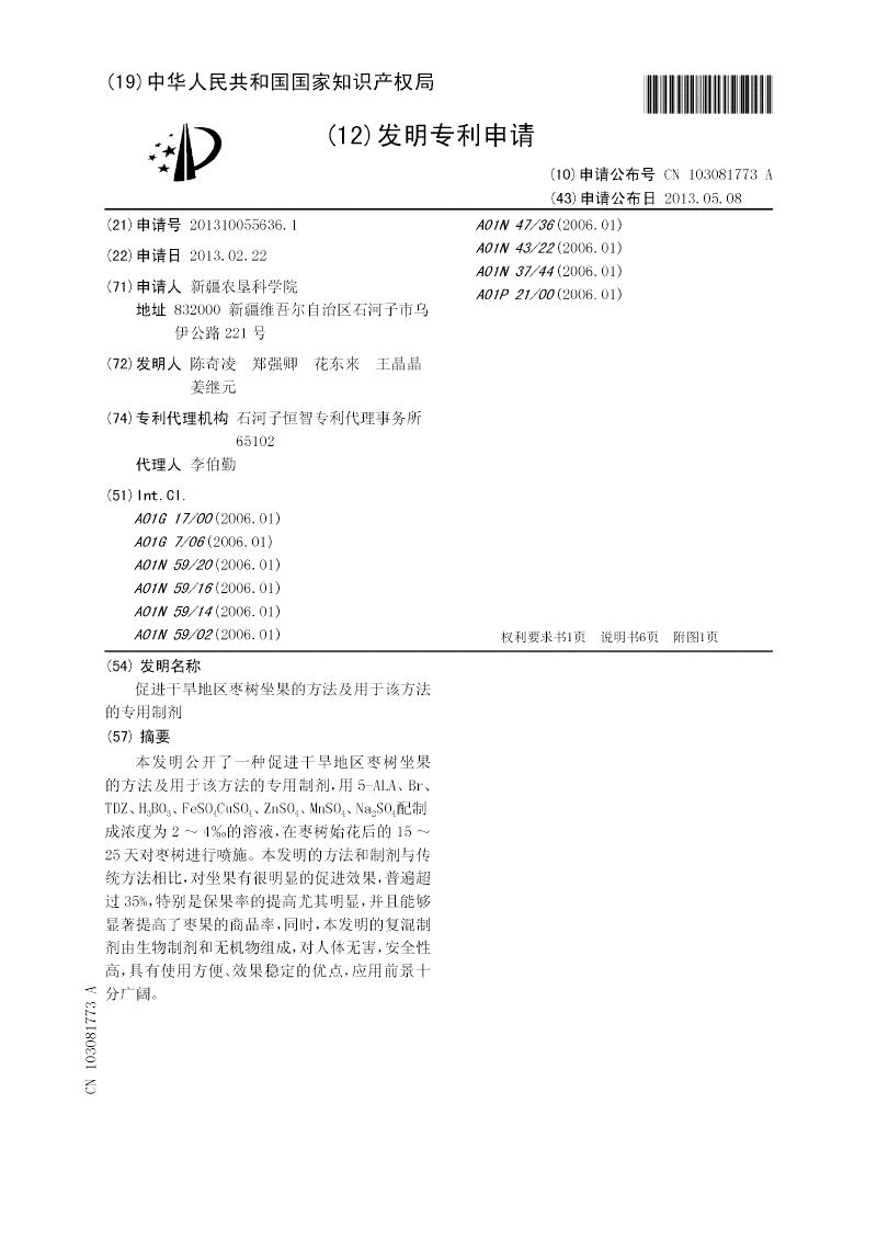 促进干旱地区枣树坐果的方法及用于该方法的专用制剂