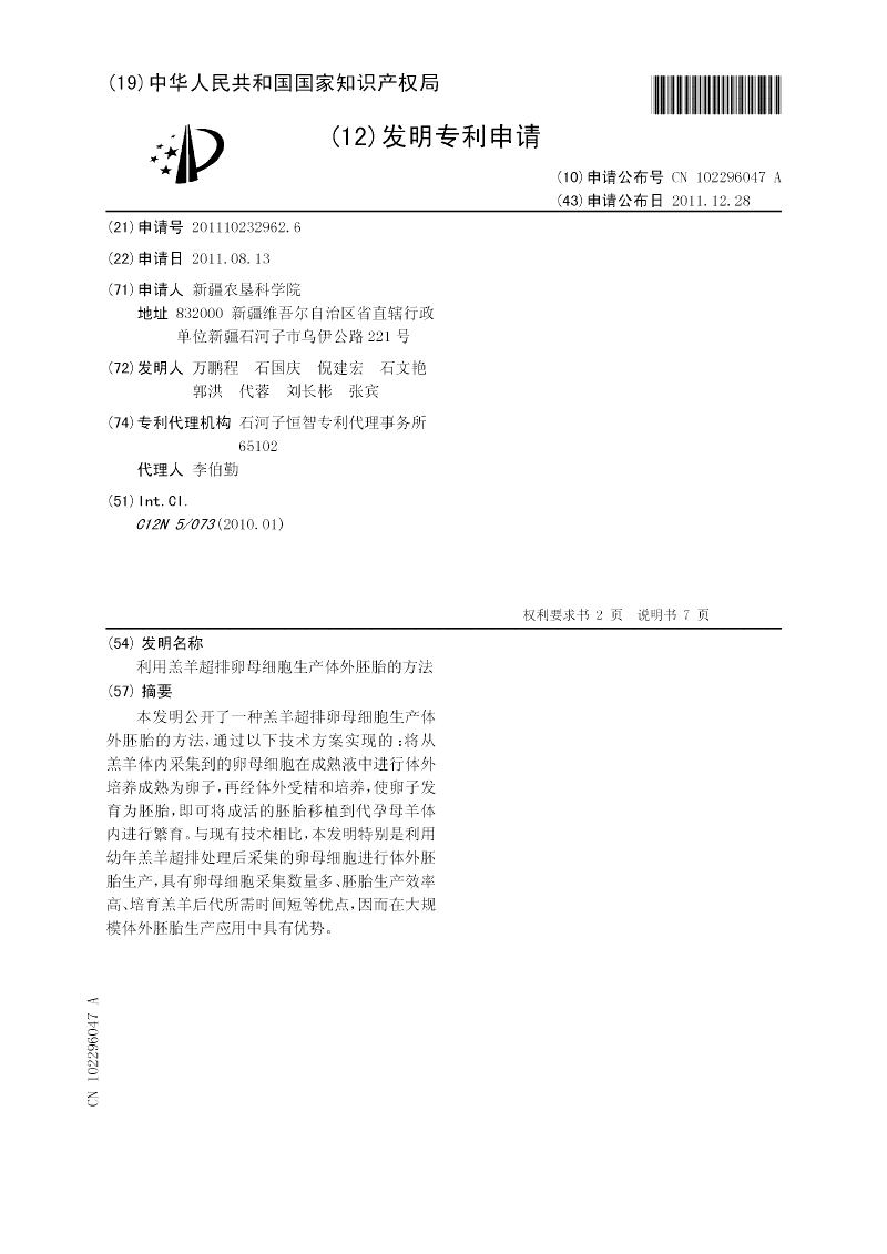 利用羔羊超排卵母细胞生产体外胚胎的方法