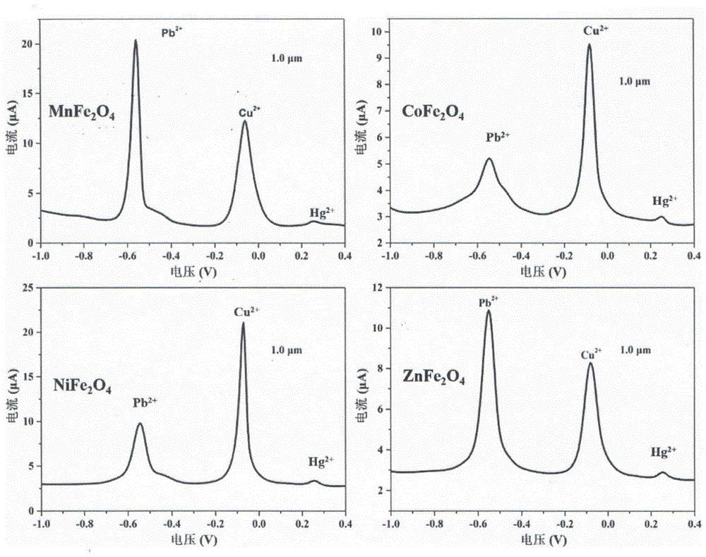 一种铁基尖晶石用于重金属离子电化学传感器的检测方法