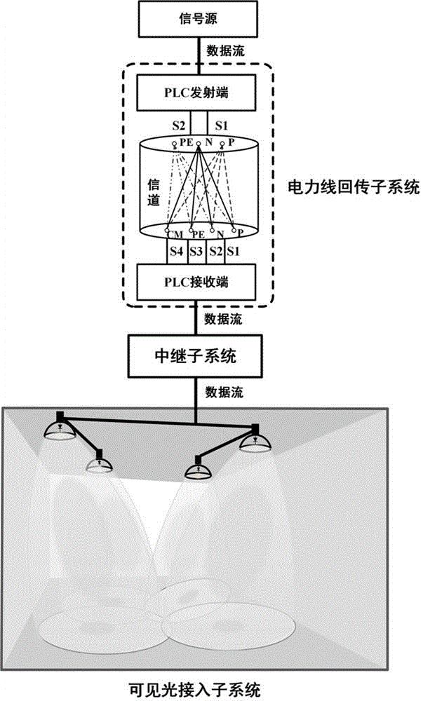 基于MIMO电力线回传的可见光中继接入系统及方法