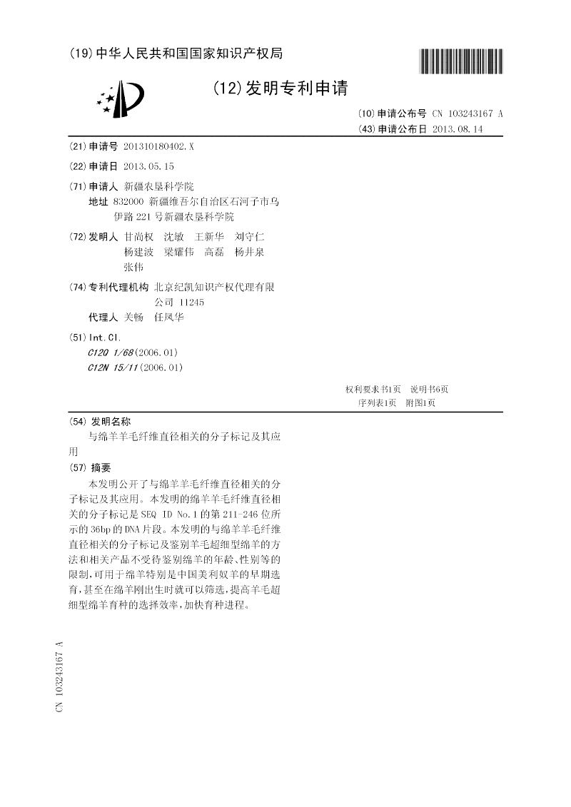 与绵羊羊毛纤维直径相关的分子标记及其应用