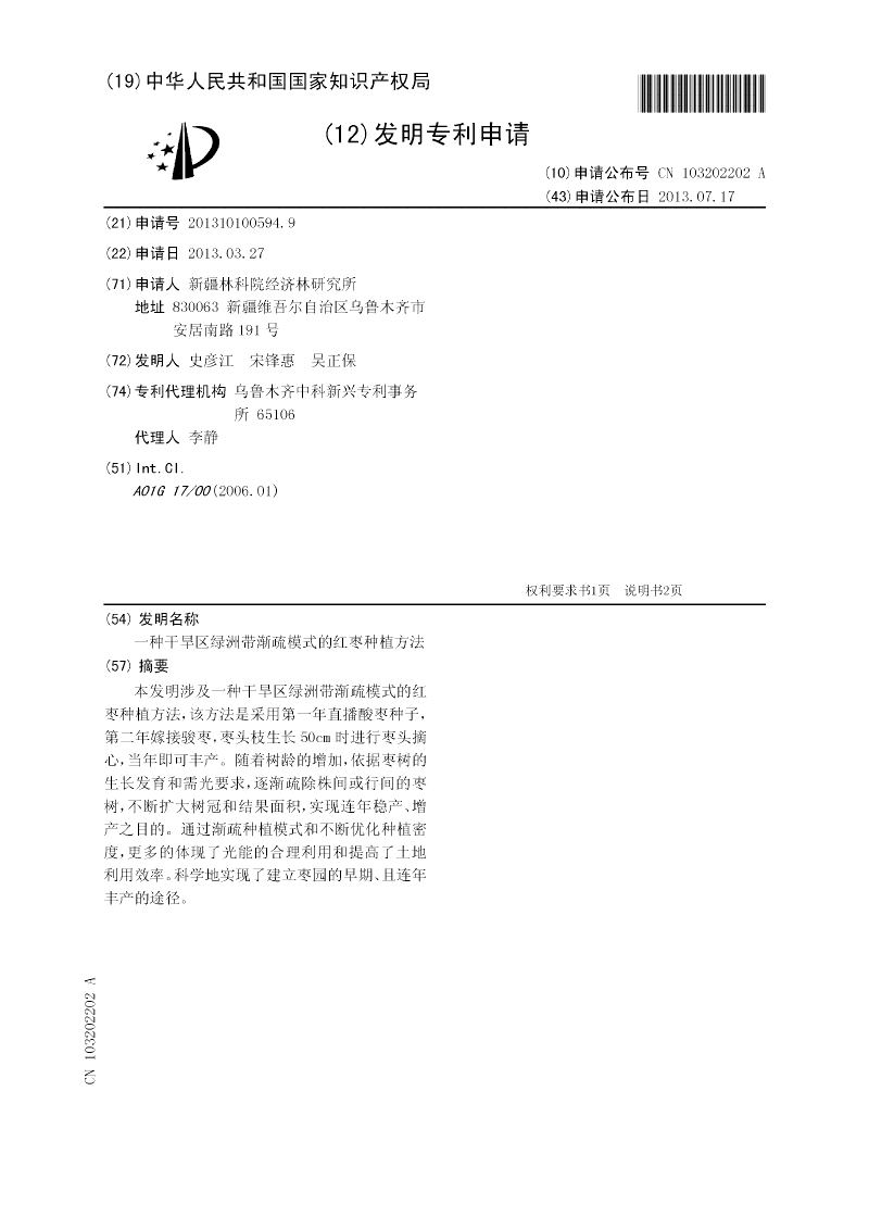 一种干旱区绿洲带渐疏模式的红枣种植方法