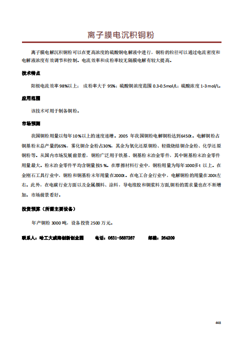 离子膜电沉积铜粉