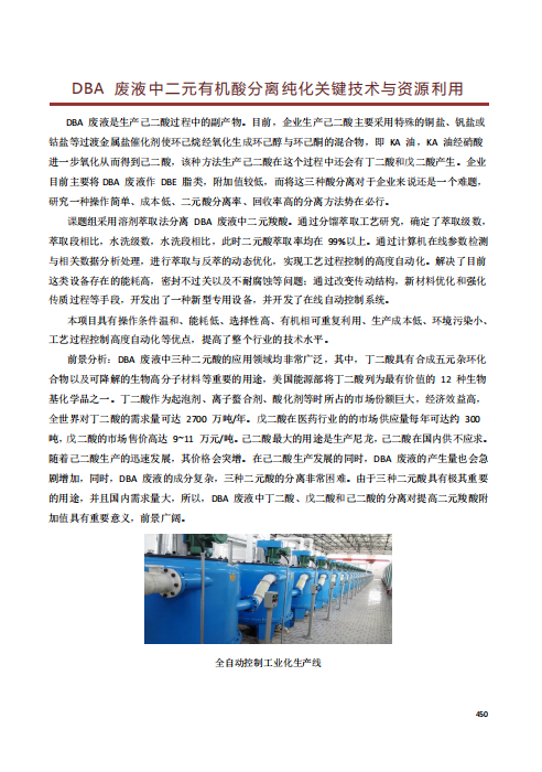 DBA 废液中二元有机酸分离纯化关键技术与资源利用