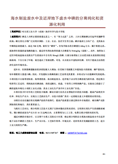 海水制盐废水中及近岸地下卤水中碘的分离纯化和资 源化利用