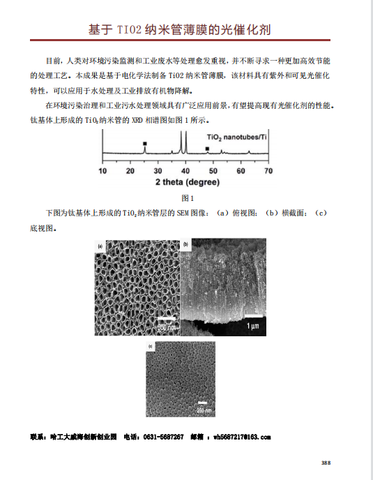 基于 TIO2 纳米管薄膜的光催化剂