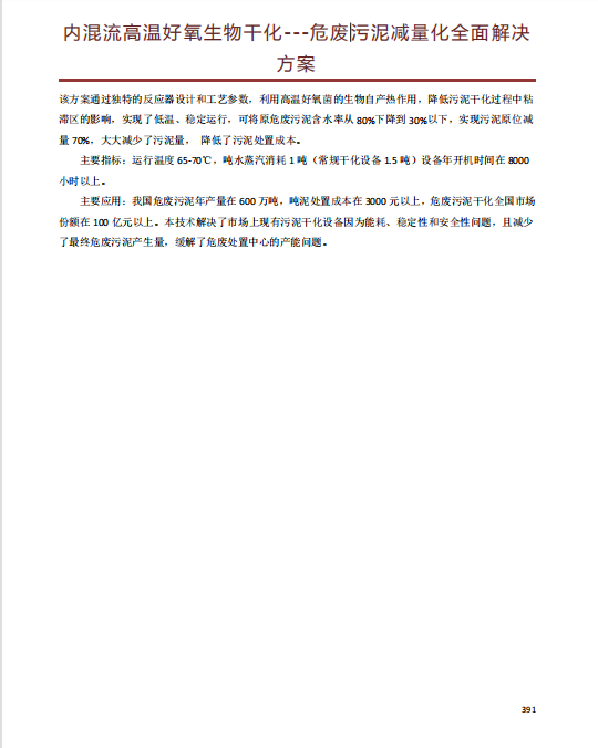 内混流高温好氧生物干化---危废污泥减量化全面解决方案