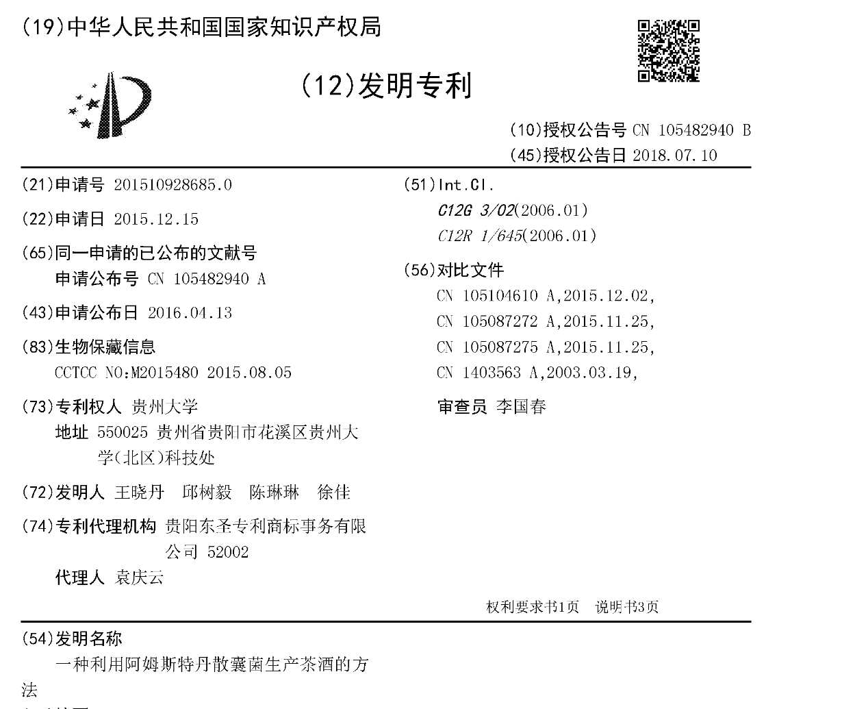 一种利用阿姆斯特丹散囊菌生产茶酒的方法