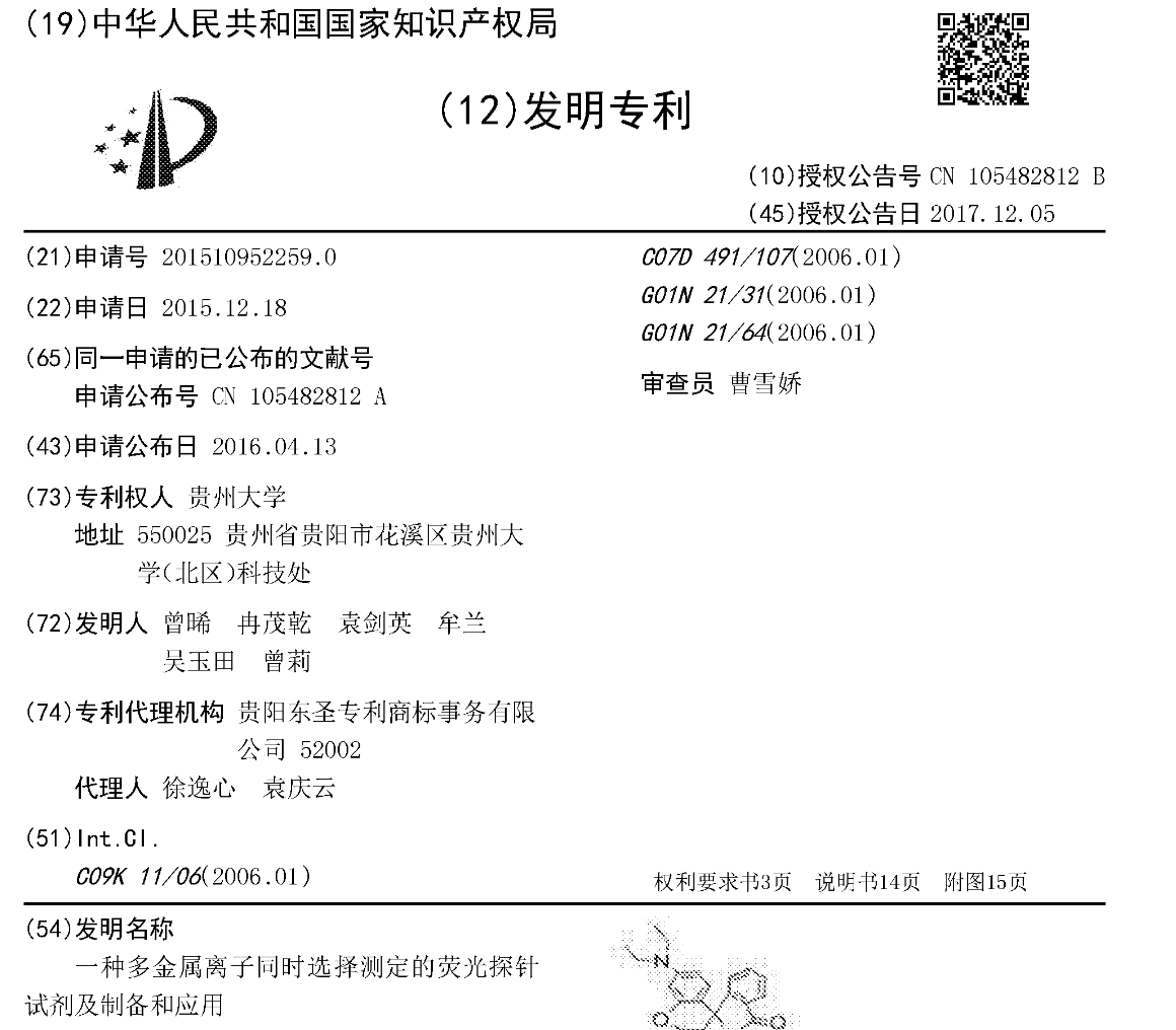 一种多金属离子同时选择测定的荧光探针试剂及制备和应用