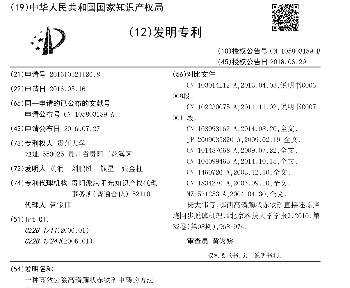 一种高效去除高磷鲕状赤铁矿中磷的方法