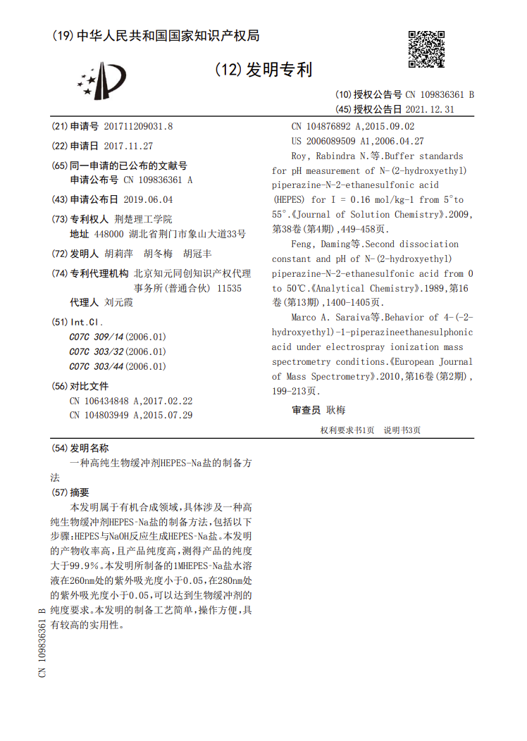 一种高纯生物缓冲剂HEPES-Na盐的制备方法