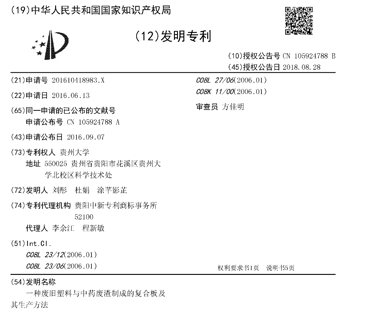 一种废旧塑料与中药废渣制成的复合板及其生产方法