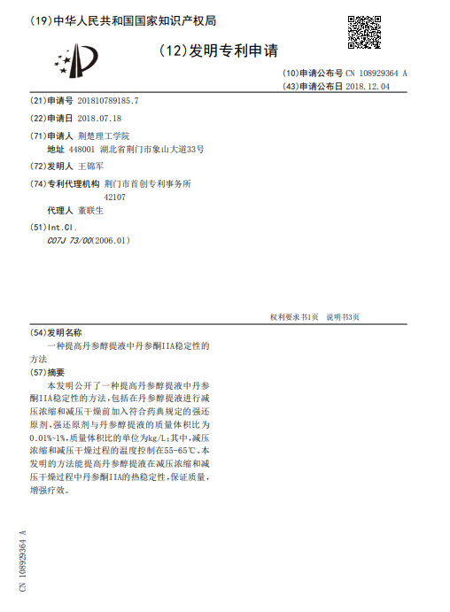 一种提高丹参醇提液中丹参酮IIA稳定性的方法