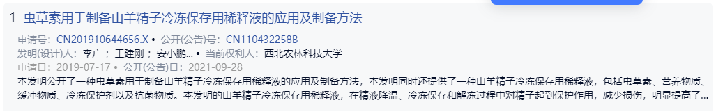 虫草素用于制备山羊精子冷冻保存用稀释液的应用及制备方法