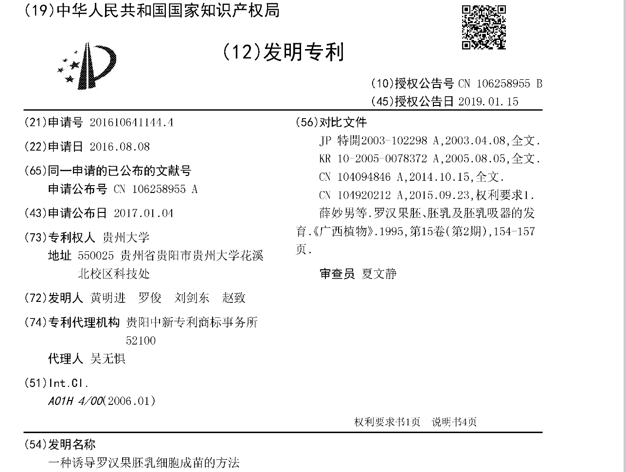 一种诱导罗汉果胚乳细胞成苗的方法