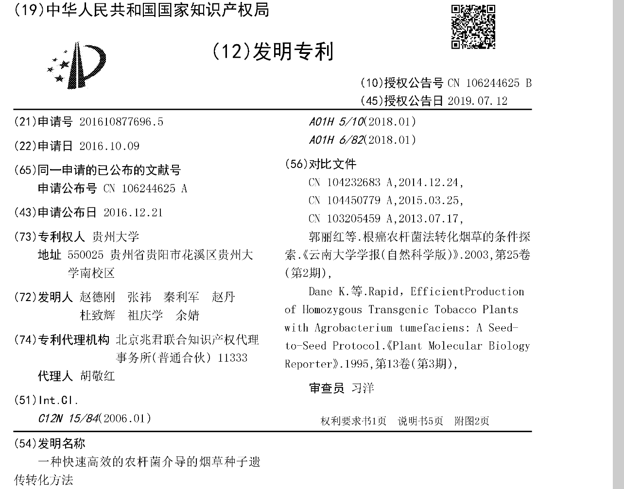 一种快速高效的农杆菌介导的烟草种子遗传转化方法