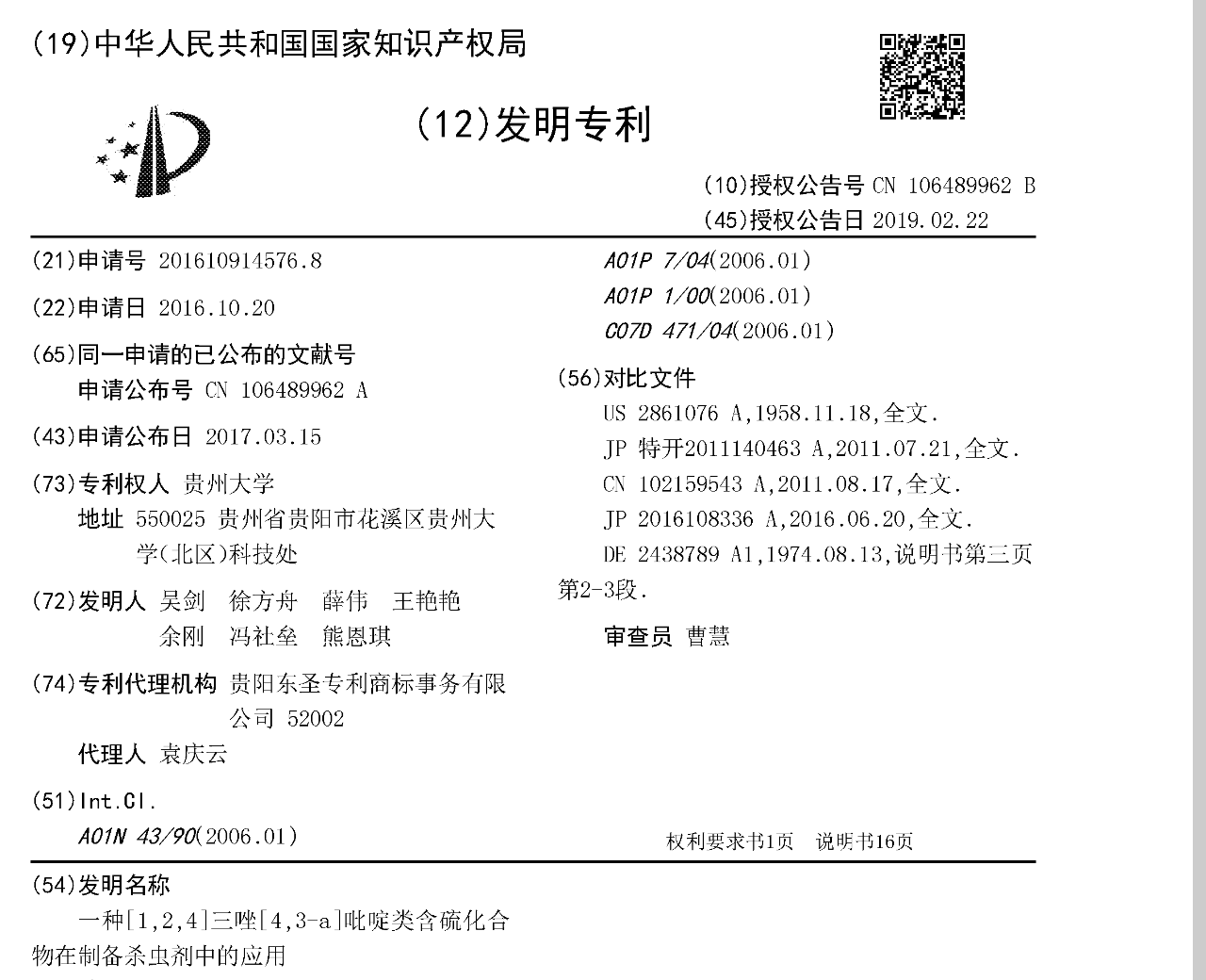 一种[1,2,4]三唑[4,3-a]吡啶类含硫化合物在制备杀虫剂中的应用