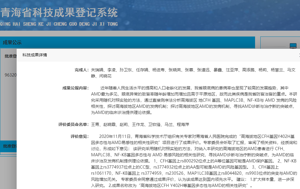高海拔地区CFH Y402H等基因多态性与AMD的相关性研究