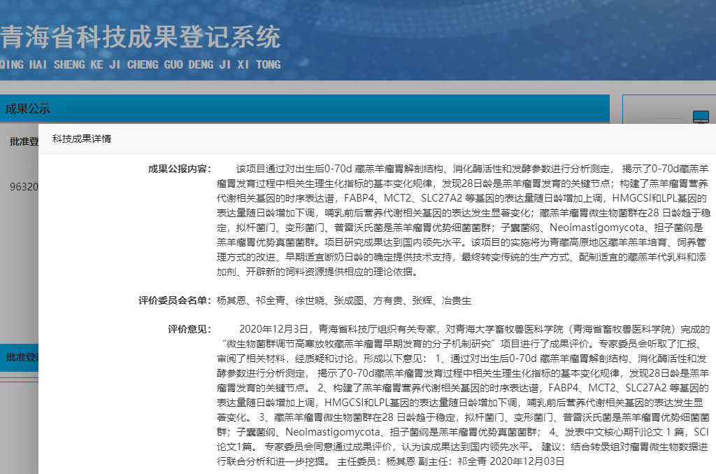 微生物菌群调节高寒放牧藏羔羊瘤胃早期发育的分子机制研究