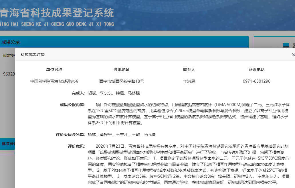 硫酸盐硼酸盐型盐湖卤水物理化学性质和相平衡研究