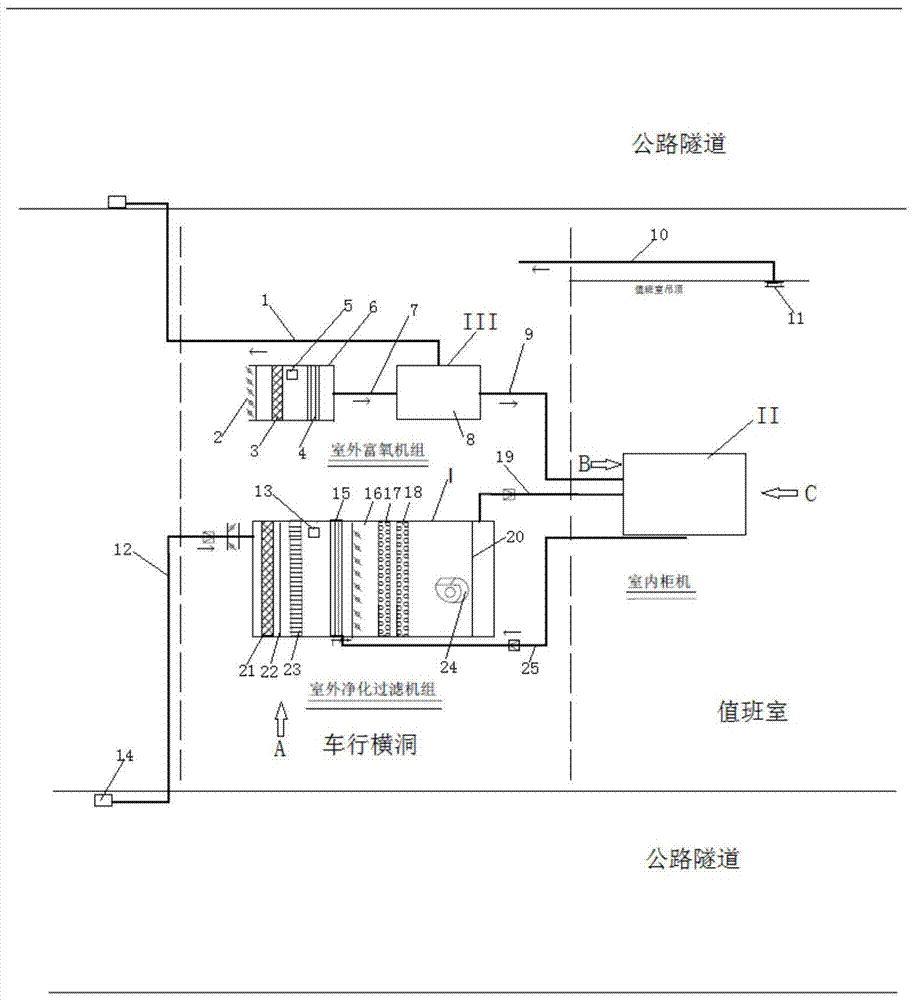 一种特长公路隧道洞内值班室组合式空气净化系统及方法