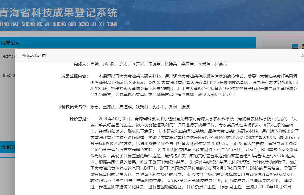 大黄油菜黄籽基因的鉴定、初步功能验证及利用
