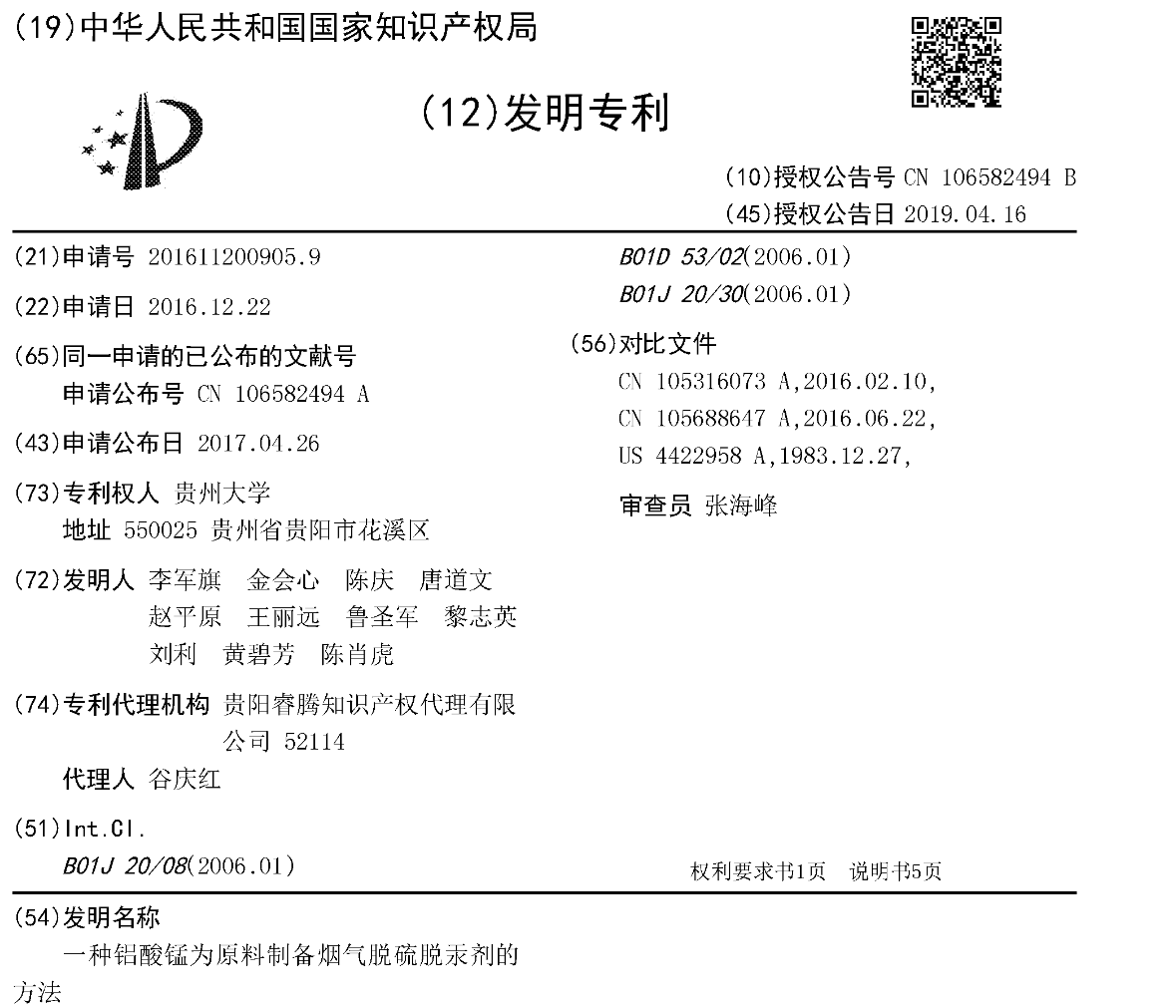 一种铝酸锰为原料制备烟气脱硫脱汞剂的方法