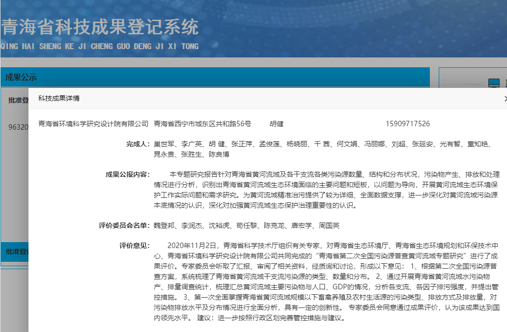 青海省第二次全国污染源普查黄河流域专题研究