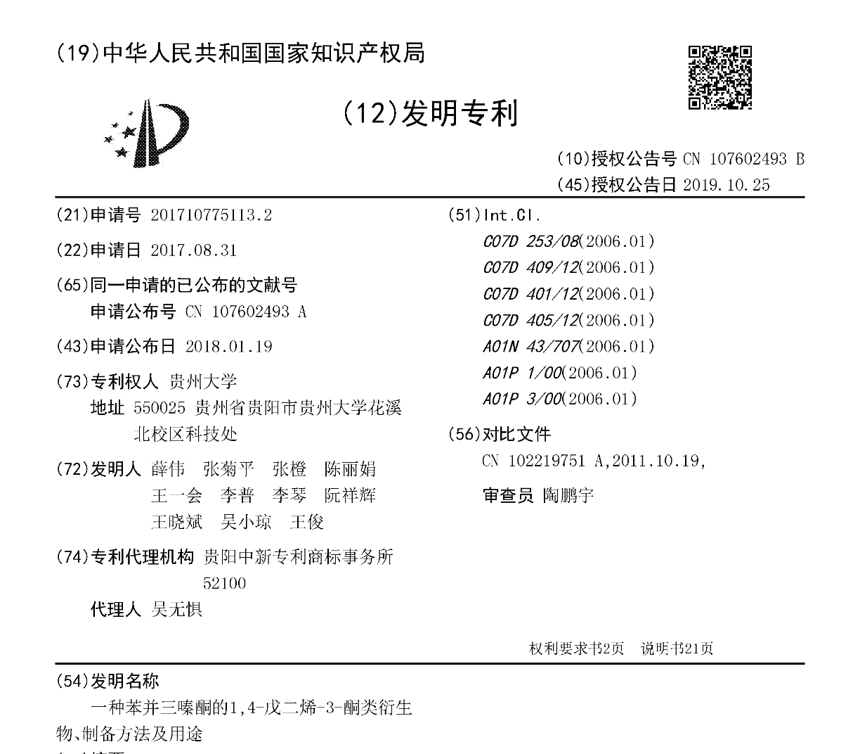 一种苯并三嗪酮的1,4-戊二烯-3-酮类衍生物、制备方法及用途