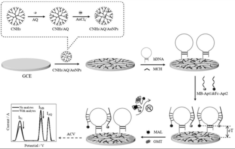 同时检测马拉硫磷和氧化乐果的比率电化学适配体传感器及制备方法和应用