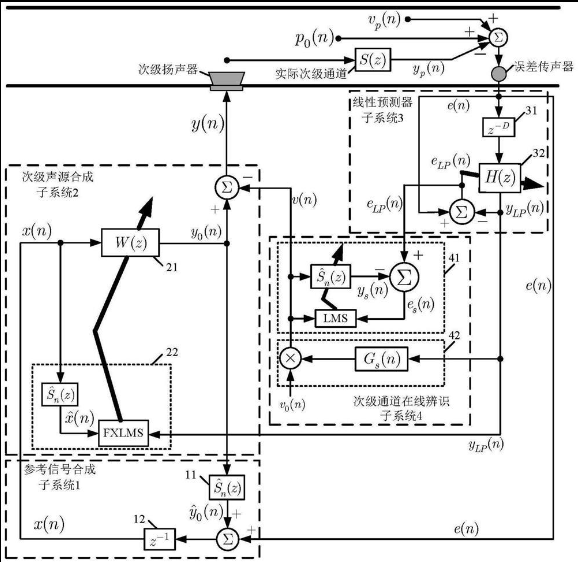 含次级通道在线辨识的反馈型主动噪声控制系统及方法