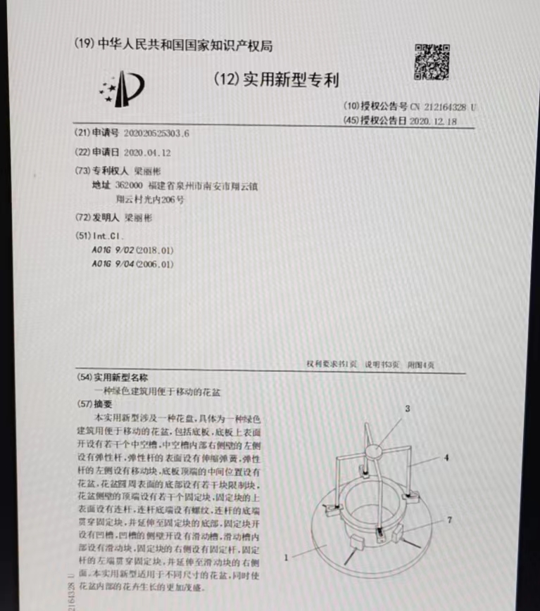 一种绿色建筑用便于移动的花盆