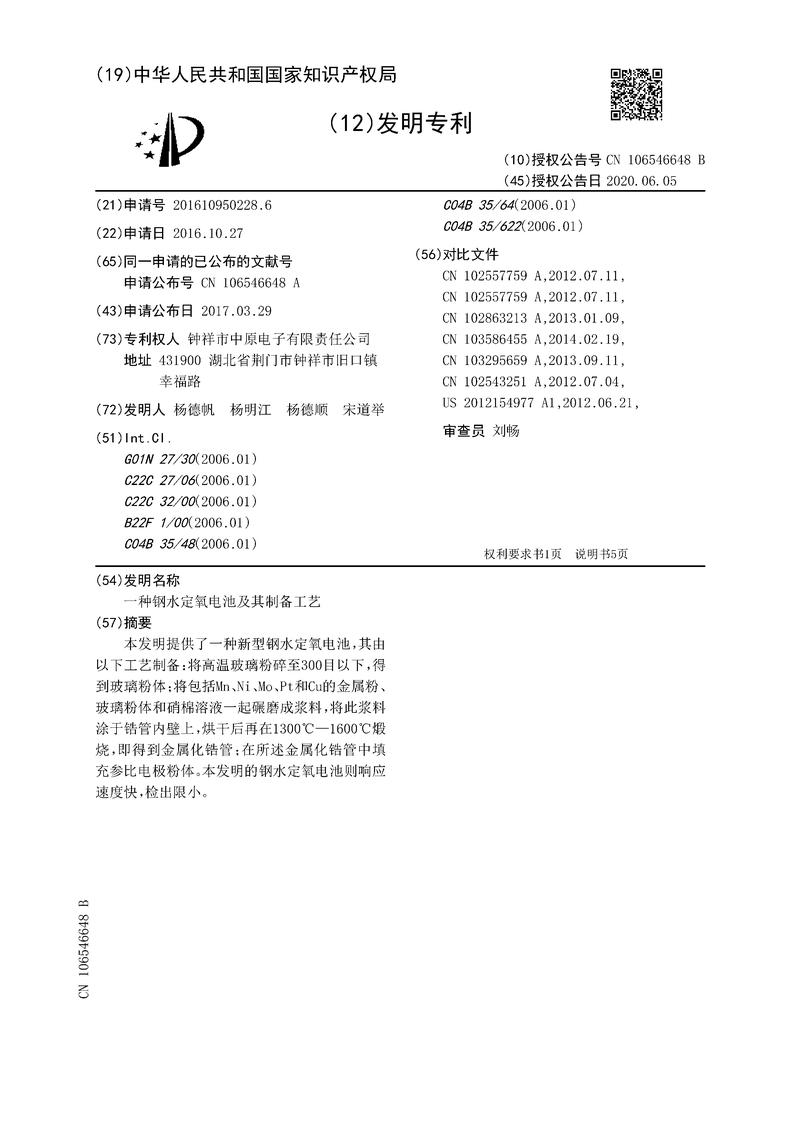 金属熔液定氧电池用参比电极粉体及制备工艺